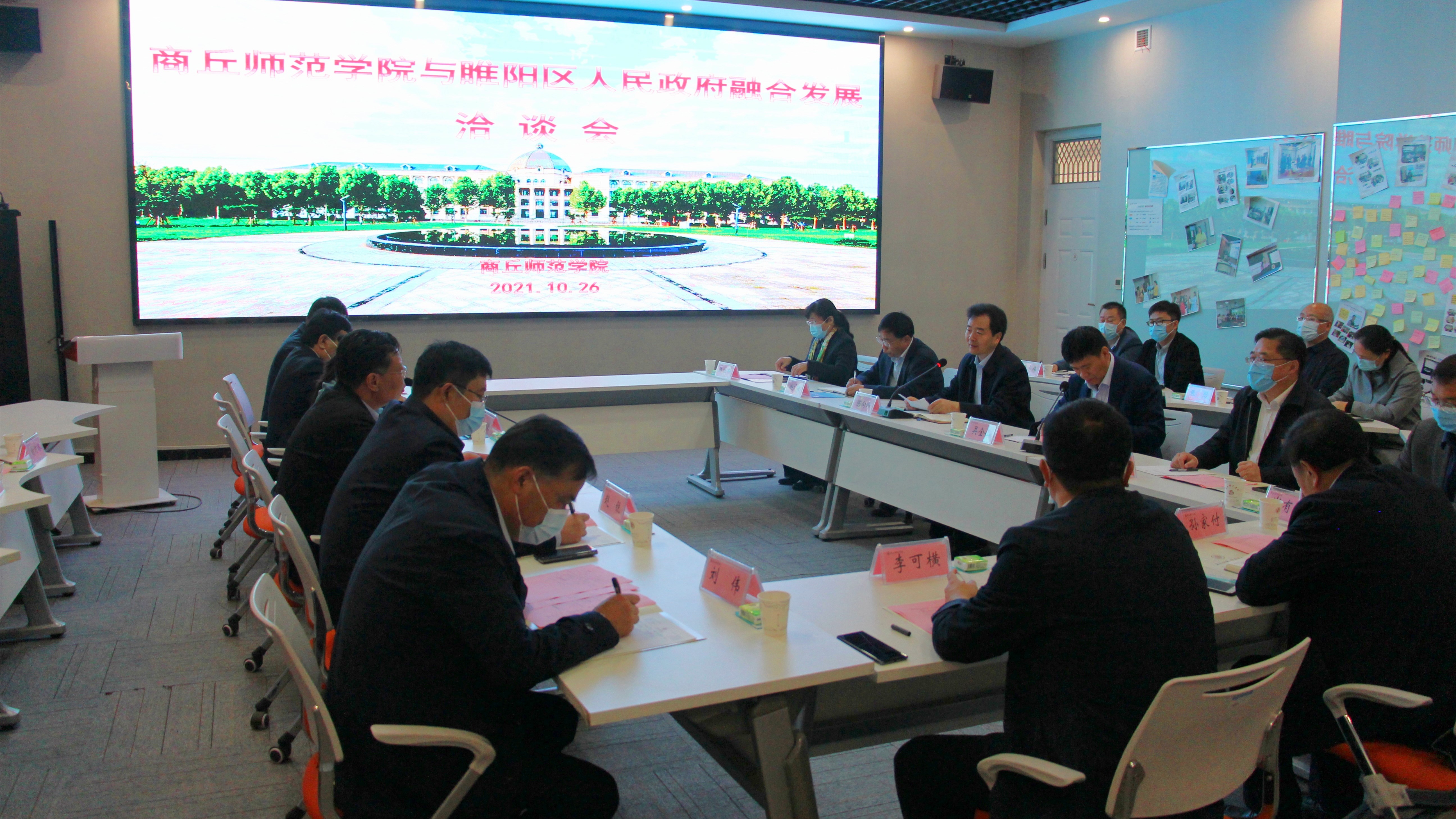 在三商楼143会议室举行洽谈会。陈向炜分别从“以学习者为中心”的教育生态、人才培养模式、师资力量、专业集群、高端服务平台、创新创业、服务地方等方面,详细介绍了我校在建设高水平应用型大学进行的改革和所取得的成绩。他指出,睢阳区具有很好的历史文化资源和产业发展基础,双方可以通过创新驱动实现校地融合发展,具有共同发展的前景目标。