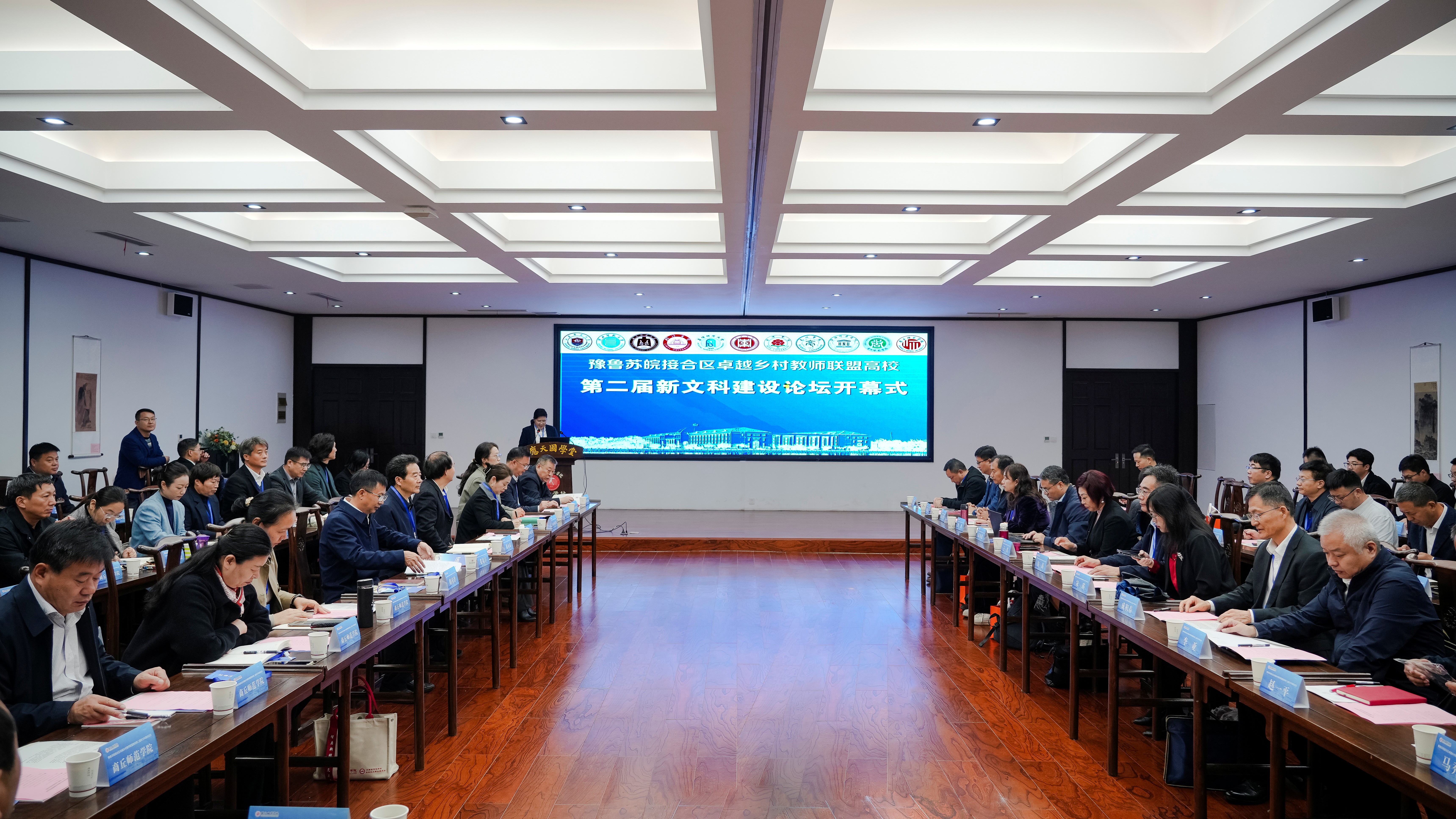 10月17日,豫鲁苏皖接合区卓越乡村教师联盟高校第二届新文科建设论坛在我校梁园校区成功举办。来自豫鲁苏皖接合区13所联盟高校教务部门负责同志、专家学者代表,华南师范大学等高校特邀嘉宾等50余人齐聚一堂,围绕人工智能赋能新文科建设相关议题交流研讨。我校党委书记张尚字、校长陈向炜出席论坛,论坛第一阶段由副校长韩桂玲主持,第二阶段由江苏师范大学教务处闫长春处长、梁靓副处长主持。
