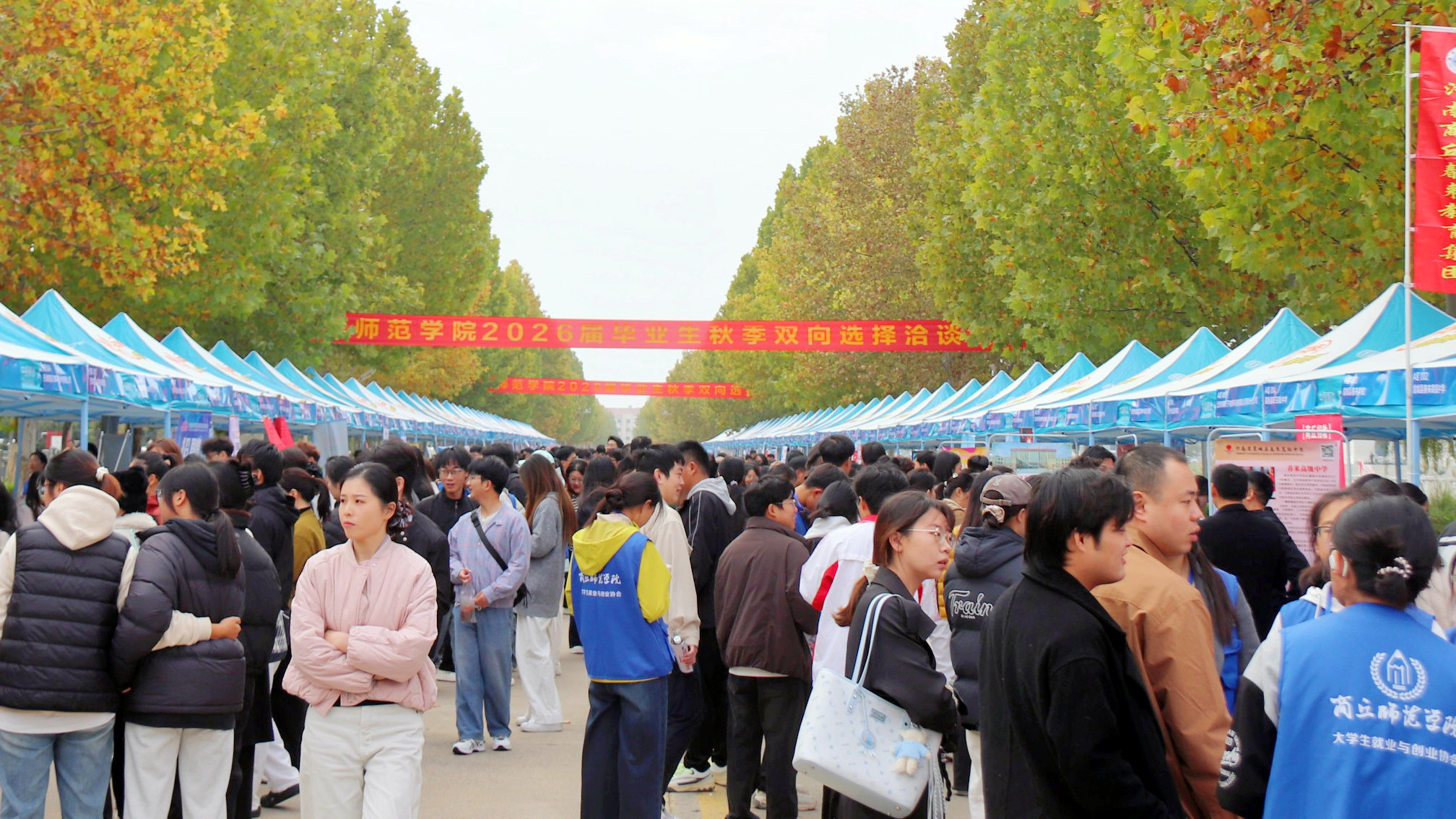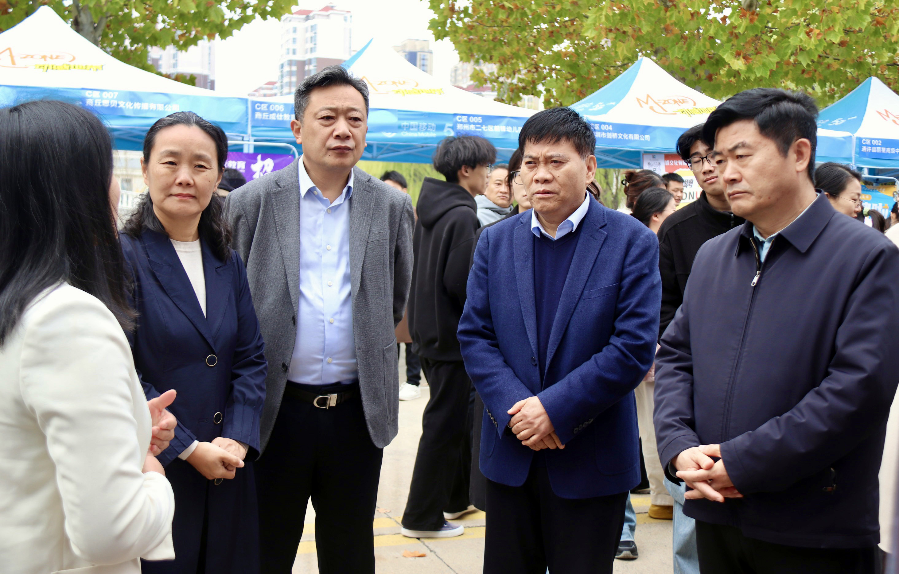10月24日,我校在梁园校区举办“豫荐未来 青春起航”2026届毕业生秋季双向选择洽谈会。校党委副书记刘国庚、吴金山,副校长王晓征,商丘市就业创业服务中心主任郭东风,创新创业教育与就业指导服务中心及学院负责人到现场指导,了解单位招聘需求情况和毕业生就业情况。