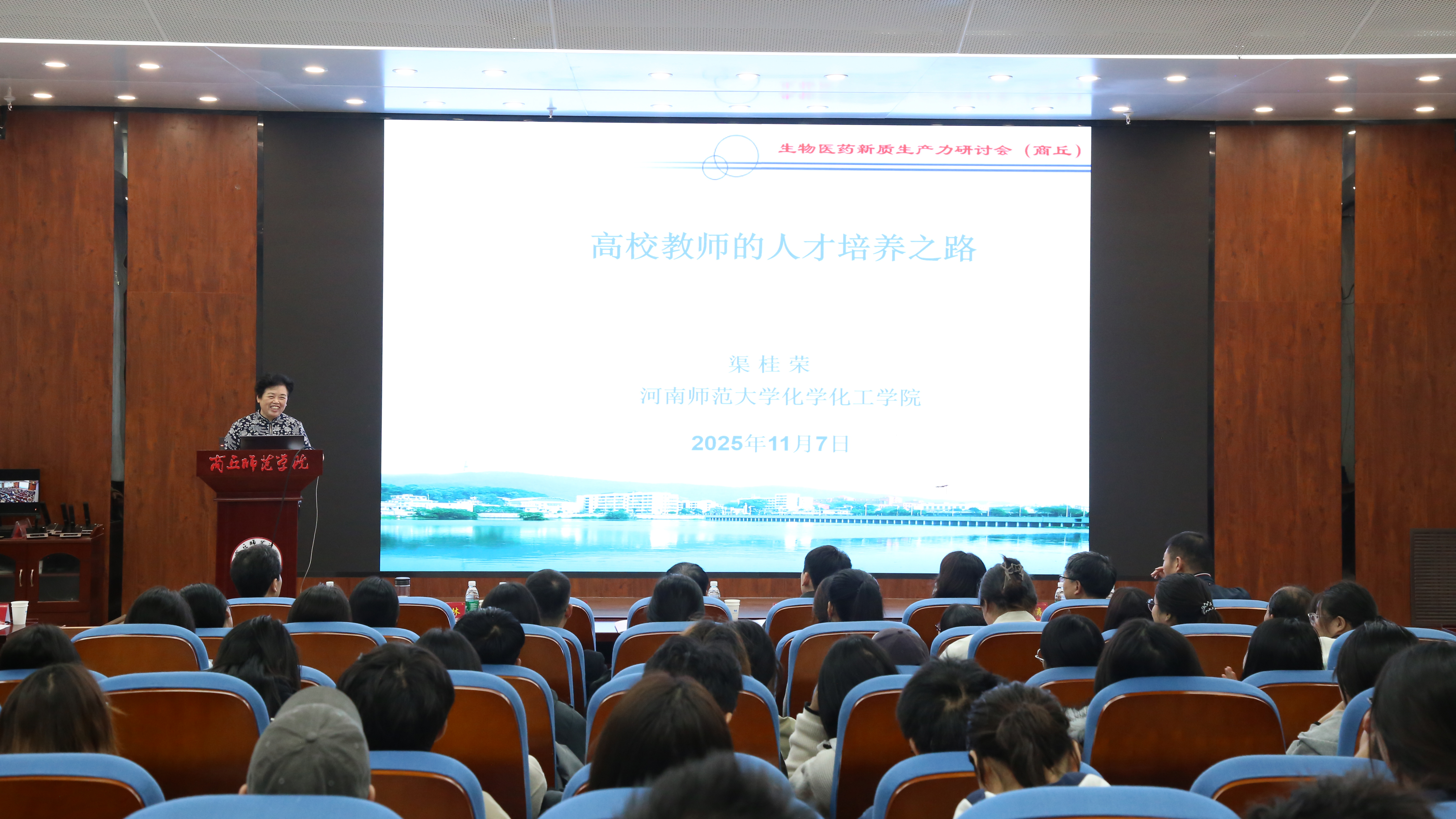11月7日,由我校主办,化学化工学院、生物与食品学院联合承办的“2025生物医药新质生产力研讨会”在睢阳校区工科中心D203报告厅举行。中国科学院院士、郑州大学常俊标教授,河南师范大学渠桂荣教授,以及来自拓新药业集团、河南瀚斯作物保护有限公司的企业代表应邀出席并作专题报告。校党委书记张尚字、校长陈向炜、副校长刘澜涛出席会议,我校180余名师生共同参会,现场学术氛围热烈。