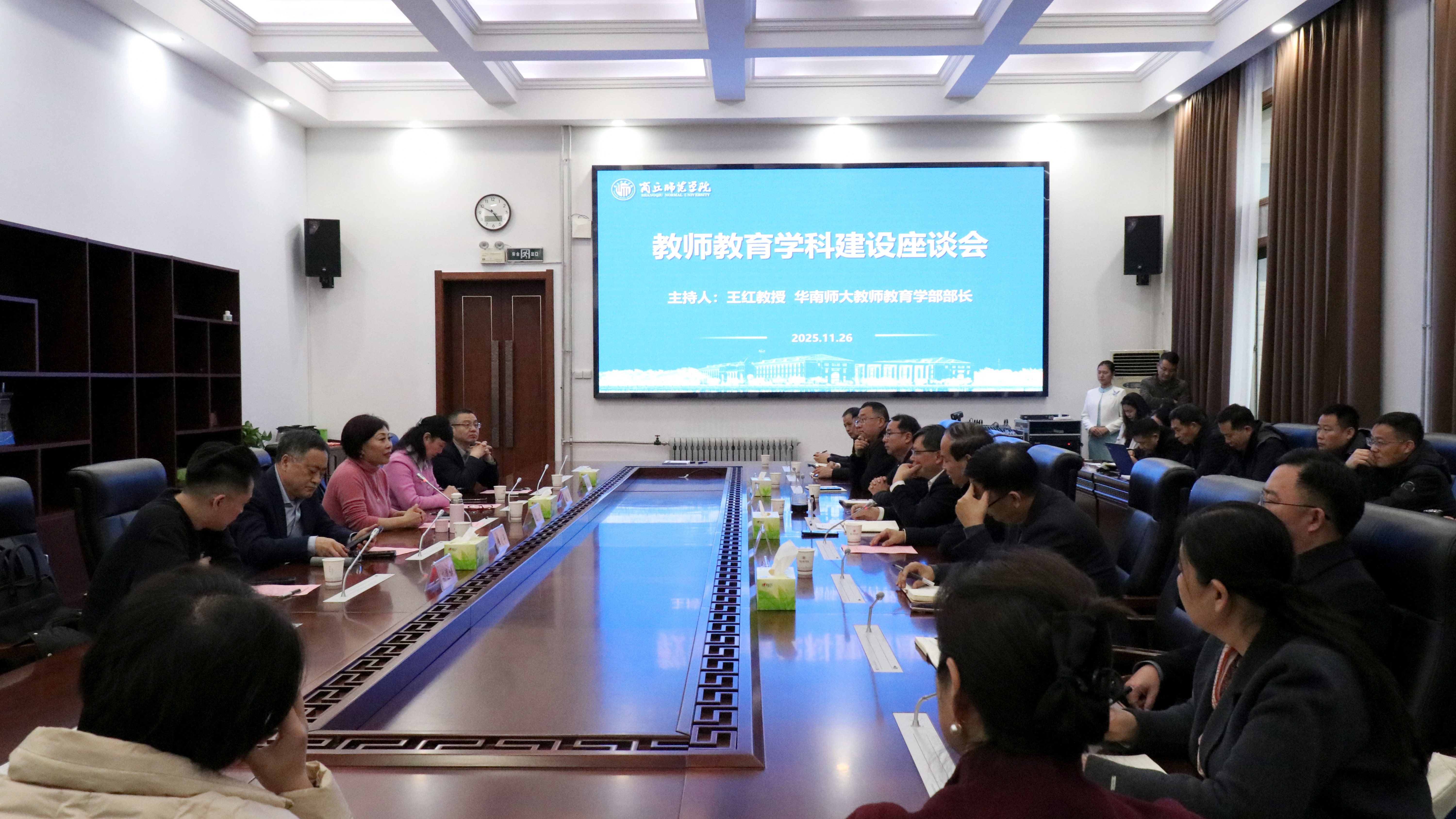 见面会结束后,王红教授主持了教师教育学科建设座谈会,围绕教育学科发展趋势、教育硕士建设点申报、学科教学论师资培养等方面同相关人员进行了广泛深入交流。