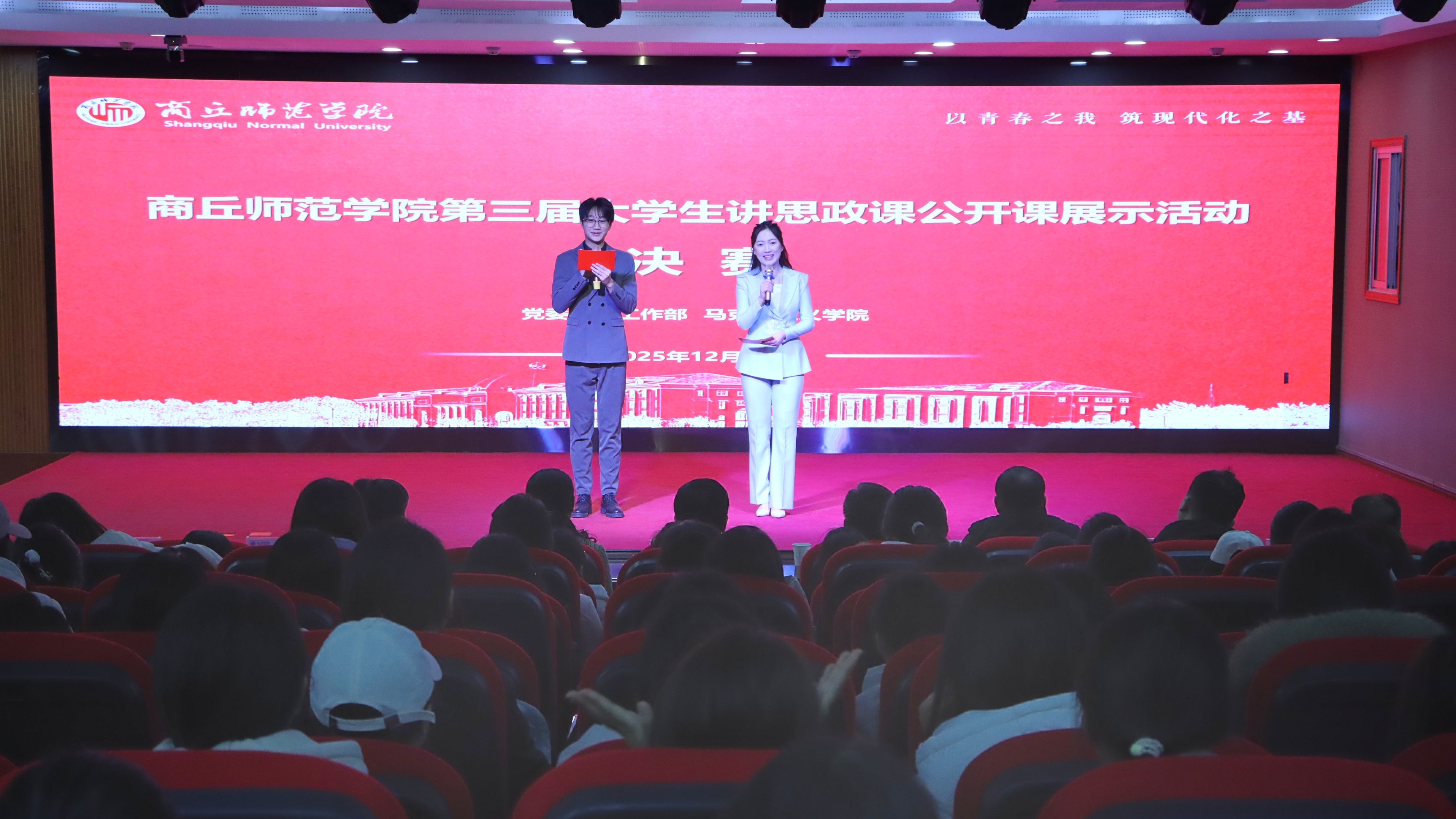 12月30日,由学校党委学生工作部和马克思主义学院联合举办的“以青春之我,筑现代化之基”——商丘师范学院第三届大学生讲思政课公开课展示活动决赛在三商楼145演播厅成功举办。校党委副书记刘国庚、副校长王晓征出席活动。