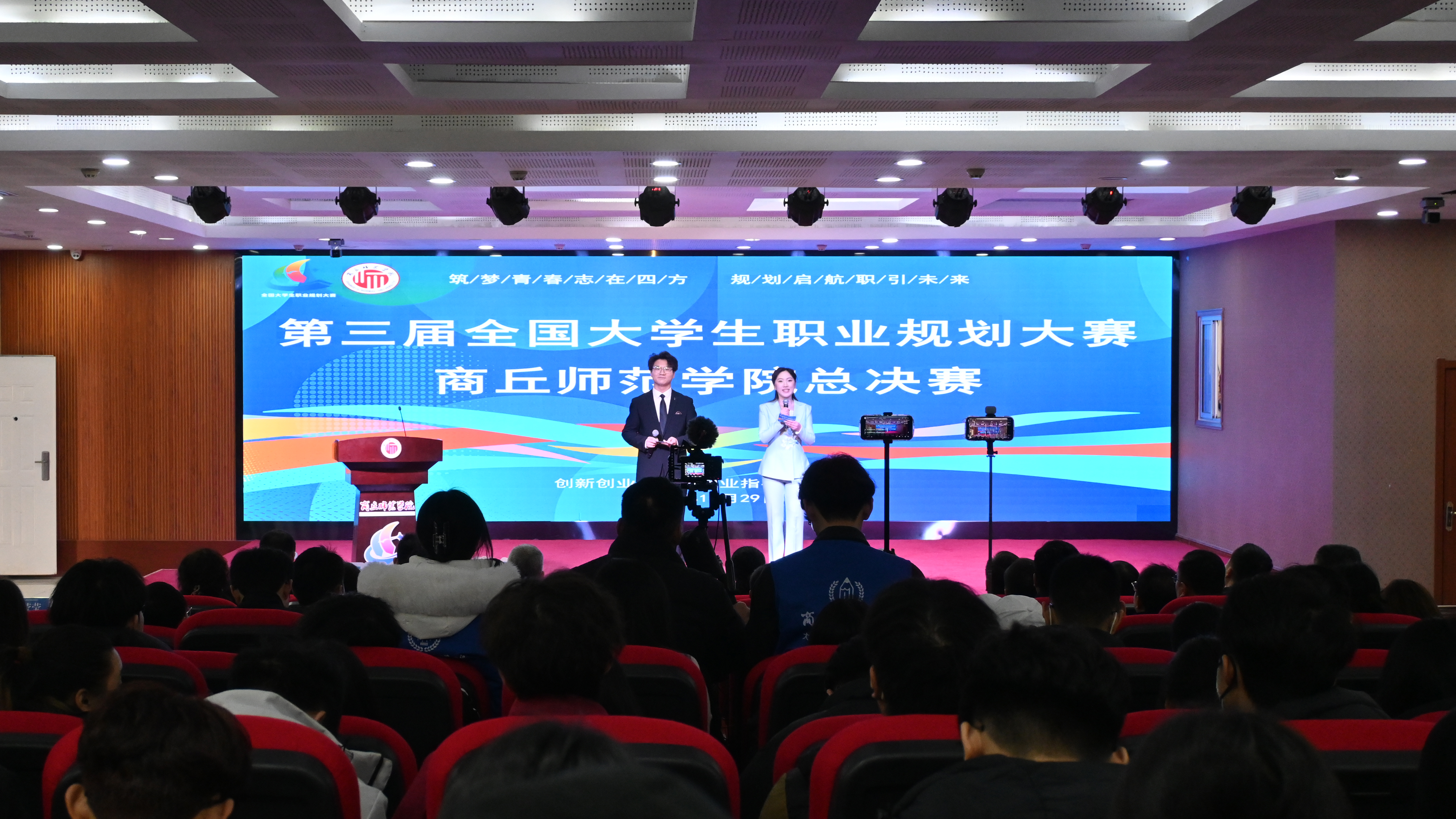 12月29日,我校在梁园校区三商楼145报告厅成功举办第三届全国大学生职业规划大赛商丘师范学院总决赛,副校长王晓征出席活动并致辞。决赛邀请河南省第三届全国大学生职业规划大赛第十五观察组组长、商丘师范学院正处级督导员李秀琴、河南省教育厅高校就业创业工作专家库专家李金保、河南科技大学招生就业办公室主任姚纲、华北水利水电大学科技服务中心副主任张卫建和我校创新创业教育与就业指导服务中心主任杨莹莹共同担任评委。