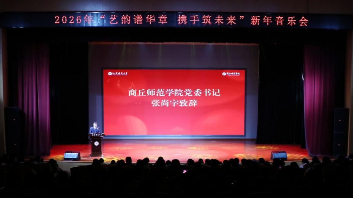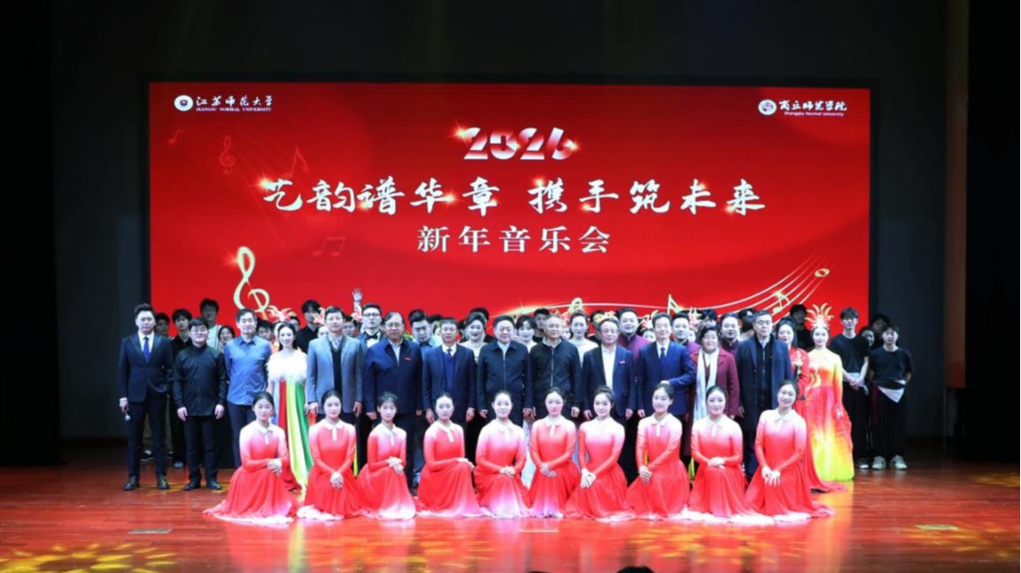 12月30日晚,商丘师范学院与江苏师范大学在江苏师范大学马克音乐厅共同举办“艺韵谱华章 携手筑未来”2026新年音乐会,两校师生联袂登台,以音乐为纽带,共迎新年,共谱华章。