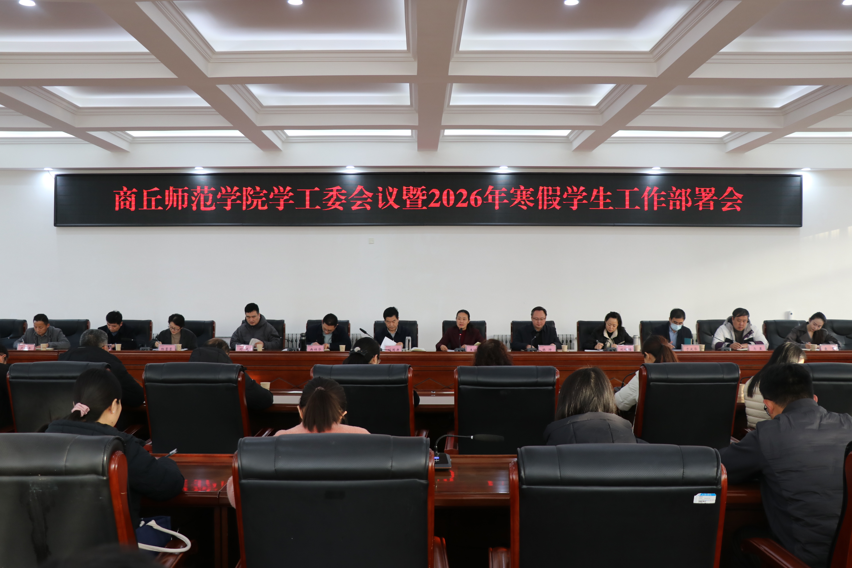 学生处负责同志就期末考试期间学生管理服务、心理健康教育、假期返乡离校报备等近期几项重点工作进行安排。宣传部负责同志就新闻稿件“三审三校”、保卫处负责同志就假期反诈防骗、校团委负责同志就寒假社会实践、创新创业教育与就业指导服务中心负责同志就2026届毕业生就业、统战部负责同志就统战工作、教务处负责同志就考务选课、后勤服务中心负责同志就学生宿舍管理等工作,进行了具体布置和安排。