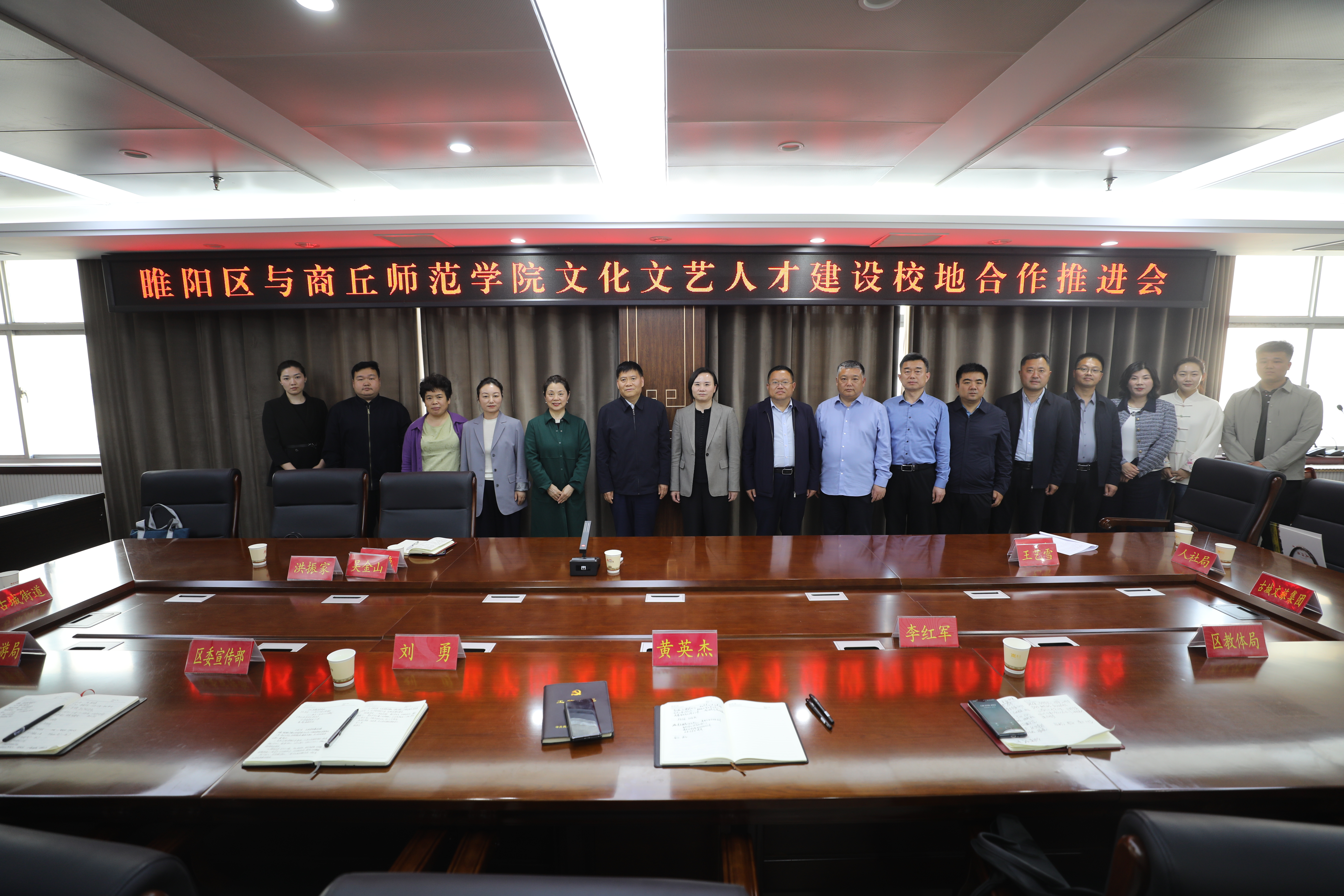 为扎实推进“访企拓岗促就业”专项行动走深走实,4月3日,我校党委副书记吴金山带领音乐学院院长张媛、辅导员老师王艺雪等一行,到睢阳区开展访企拓岗调研交流,举行就业实习基地签约仪式。睢阳区委常委、宣传部部长、副区长黄英杰主持会议。睢阳区文旅局、教体局、人社局、民政局和商丘文化旅游投资集团等负责人参加会议。