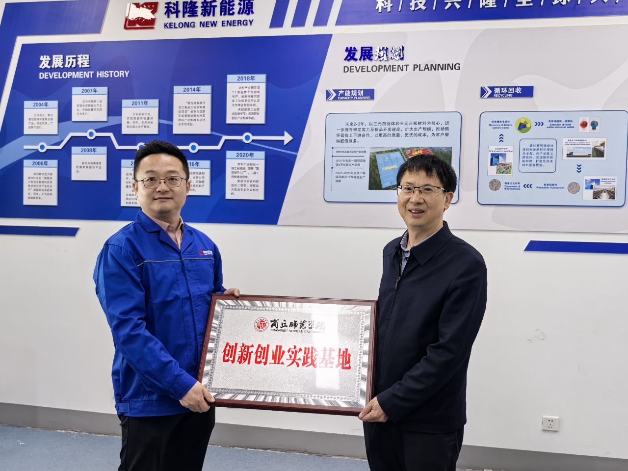双方共同签署了《商丘师范学院大学生就业实习基地协议书》,并举行了“大学生就业实习基地”“创新创业实践基地”授牌仪式。