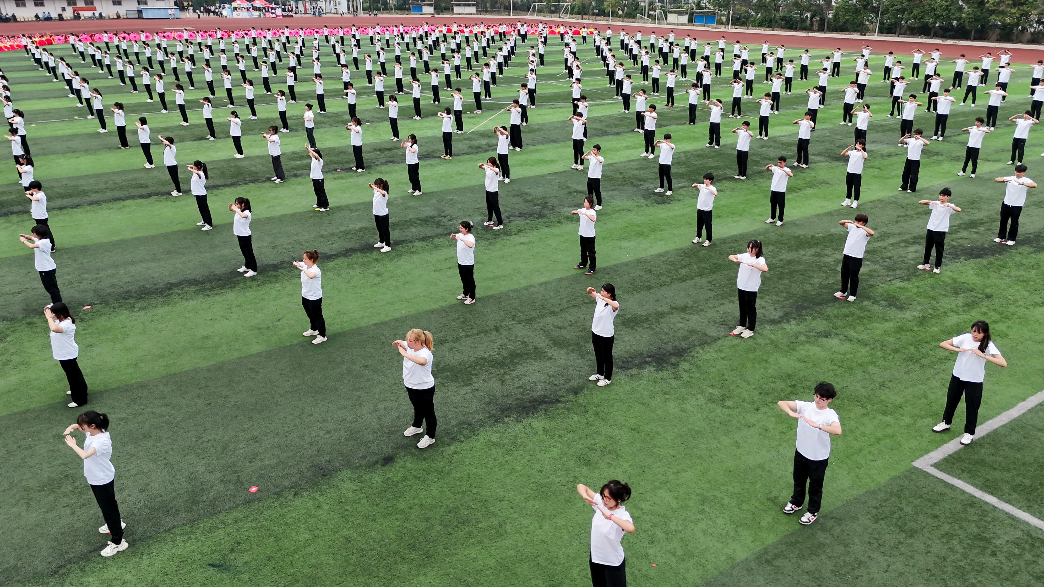 舒展、躬身、腾跃,步调一致的姿态,彰显少年的昂扬风采