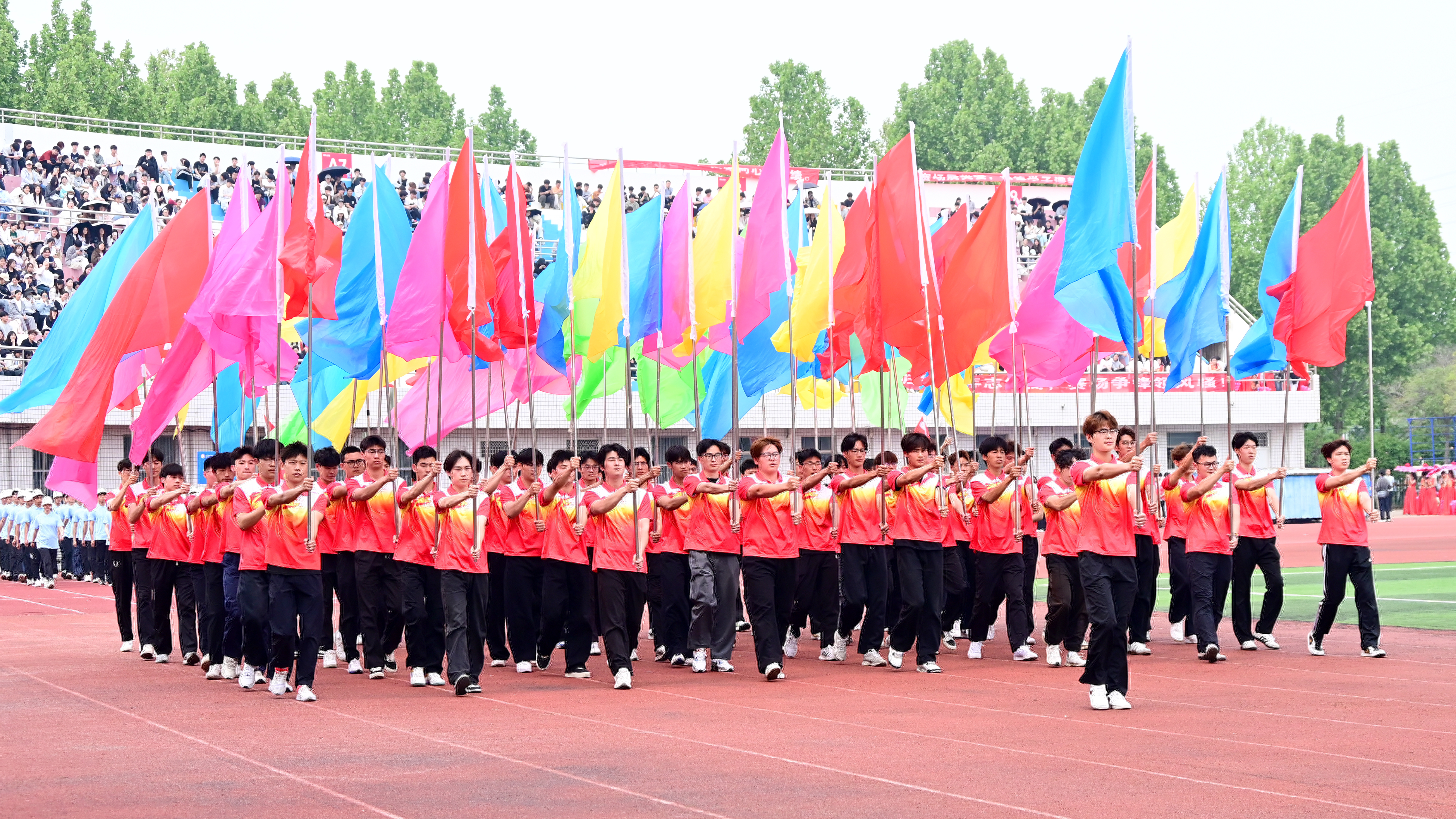 旌旗猎猎,迎风舒展,为赛场渲染一派蓬勃的生机与朝气