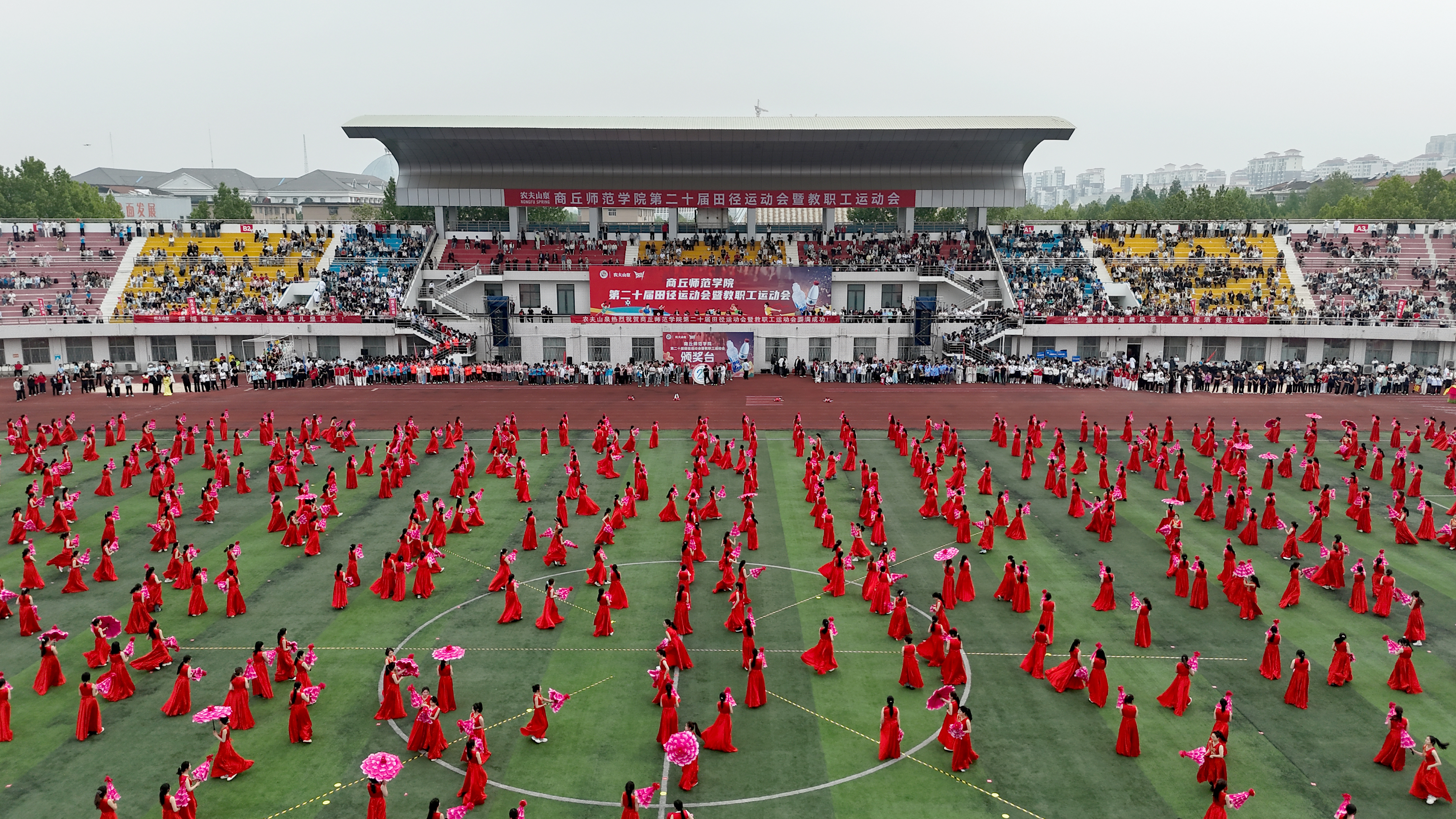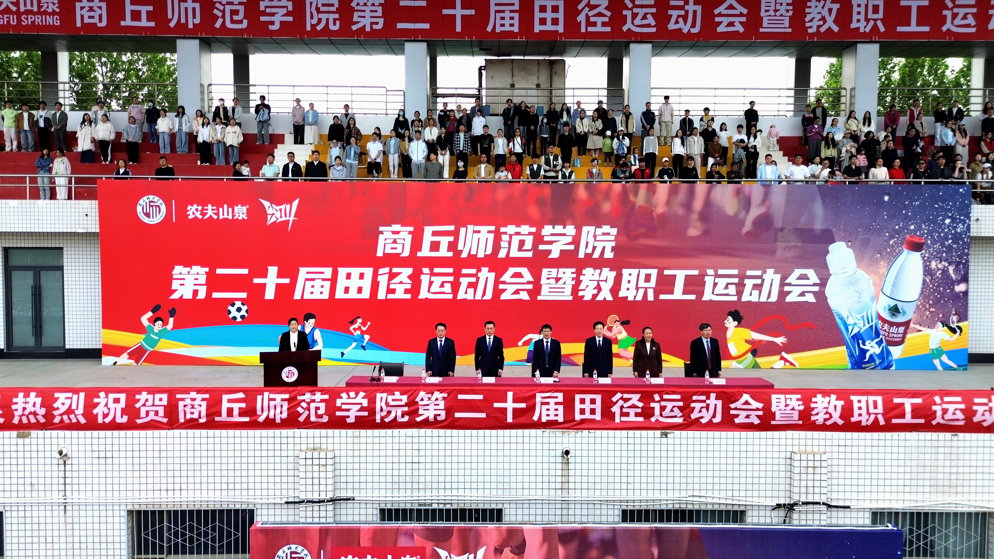 4月16日,我校第二十届田径运动会暨教职工运动会在梁园校区体育场开幕。校领导张尚字、陈向炜、何瑞强、王晓征、刘澜涛、韩桂玲出席。校党委书记张尚字宣布运动会开幕,校长陈向炜致开幕词,副校长韩桂玲主持开幕式。第二十届田径运动会组委会和各单位负责同志,裁判员,参赛运动员,师生代表参加开幕式。