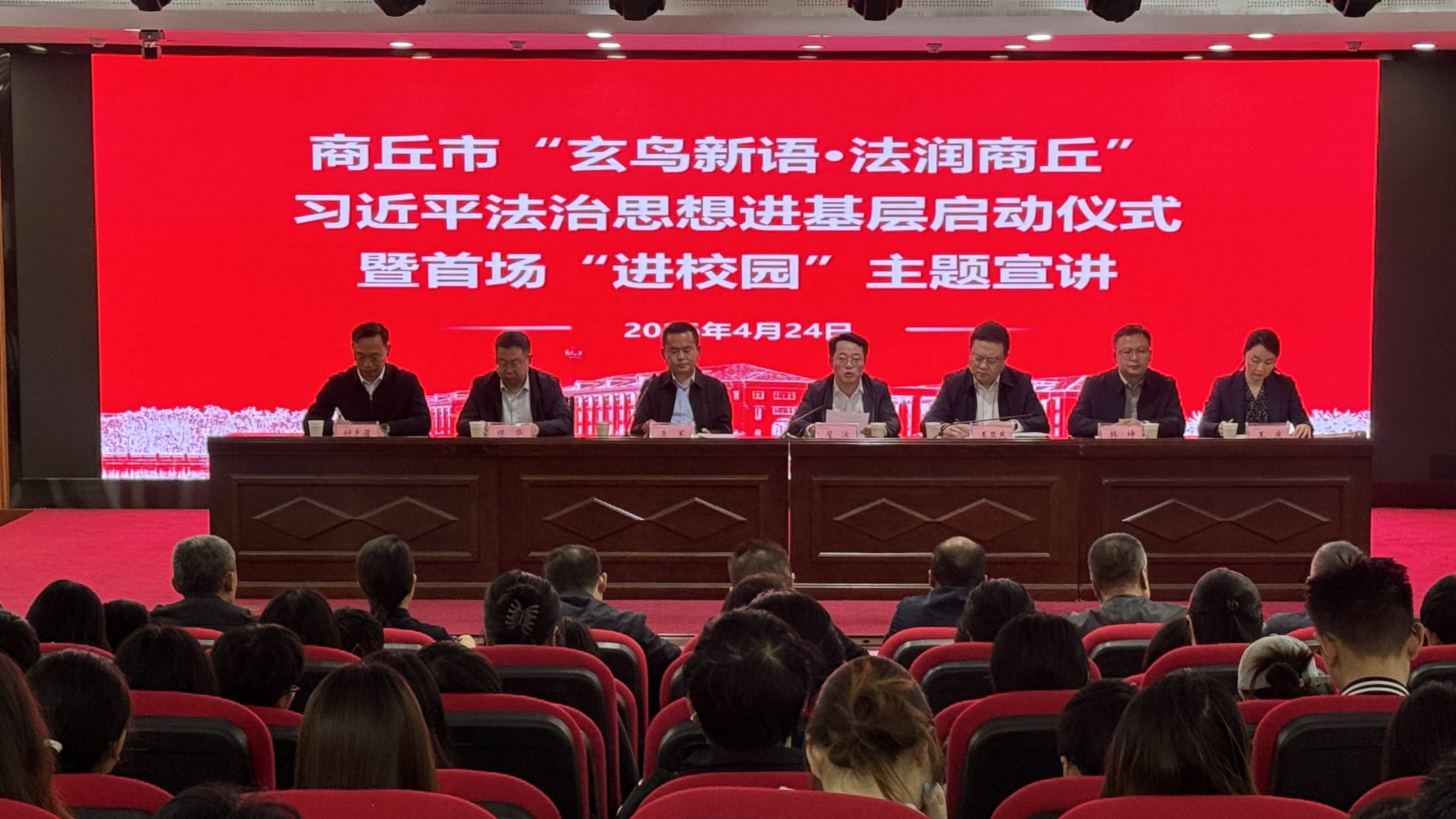 4月24日,商丘市“玄鸟新语·法润商丘”习近平法治思想进基层暨首场“进校园”主题宣讲活动启动仪式于我校三商楼145报告厅正式举行。商丘市委政法委副书记王亚东、商丘师范学院副校长翟滨出席本次活动,商丘市司法局副局长李军主持启动仪式。