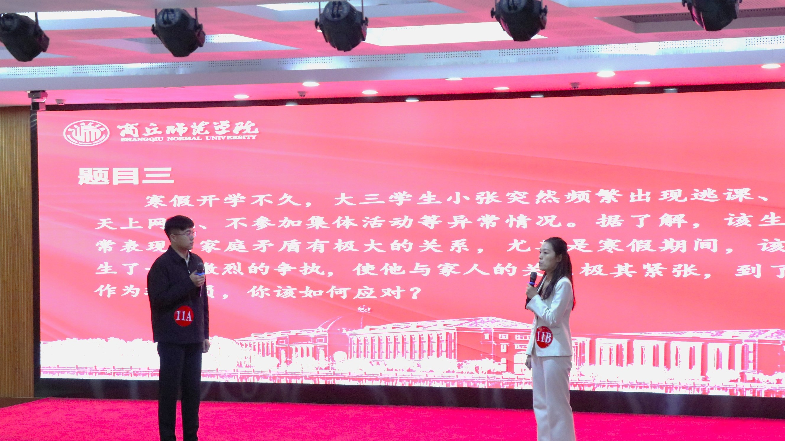 本轮比赛重点考察辅导员综合运用理论分析问题、研判问题、解决问题的能力。参赛选手赛前10分钟分别抽取1道案例,以“我提问,你回答”的方式进行案例辨析,A、B选手围绕案例交互提问与应答,共同辨析原因、研讨对策和总结规律。
